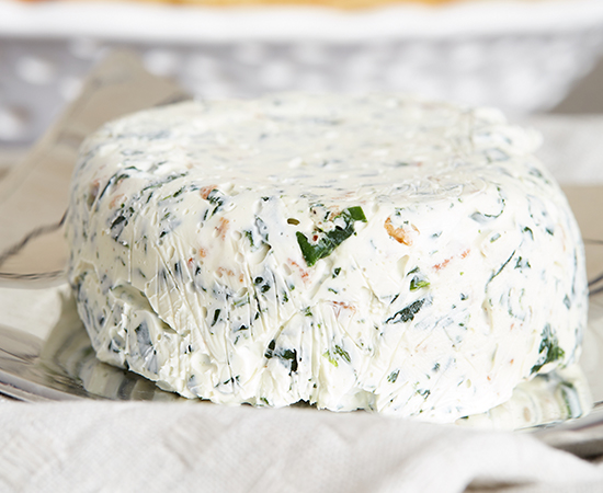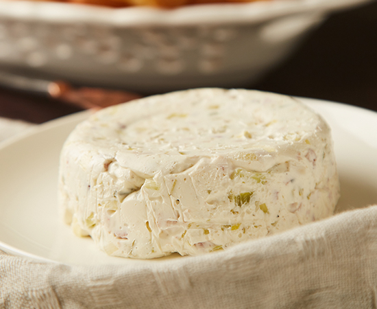 Queso crema con pasas y pecanas con mermelada y aceituna