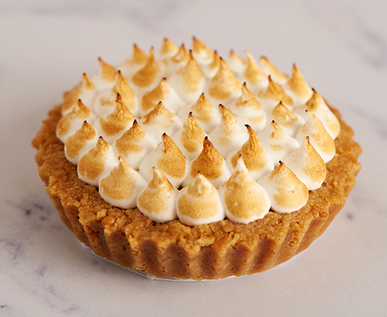 Base de galleta de vainilla relleno con una crema de limón y merengue.