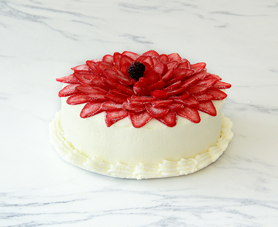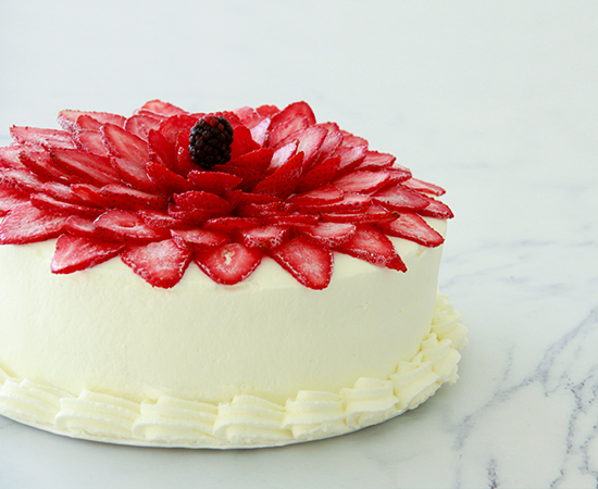 keke de vainilla relleno con manjar y fresas bañado con crema chantilly